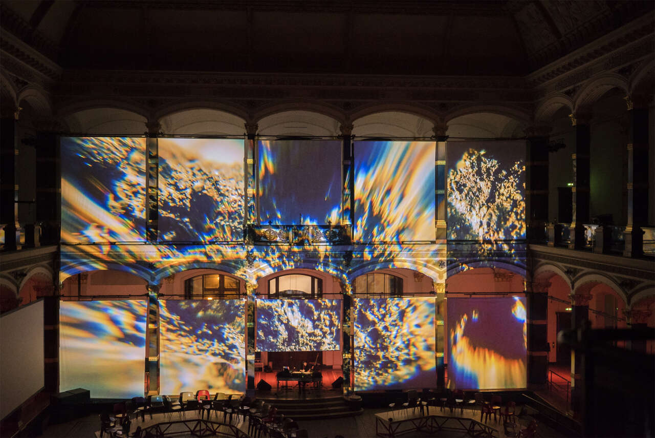 Invité par la compositrice Dasha Rush dans le cadre du Berliner Festspiele, Malo Lacroix a conçu et réalisé une performance vidéo sur une projection monumentale dans le halle du Martin Gropius Bau, emblématique centre d’art de Berlin. L’œuvre présente différents paysages de lumière, de matières minérales et liquide jouant avec la composition sonore mêlant instruments classiques et musique électronique.